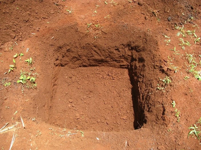 Đáy hố cần được xới tơi, thoát nước tốt (có thể rải một lớp sỏi hoặc gạch vụn bên dưới nếu nền đất dễ ngập).